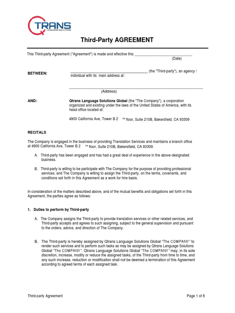 3Rd Party Agreement Template