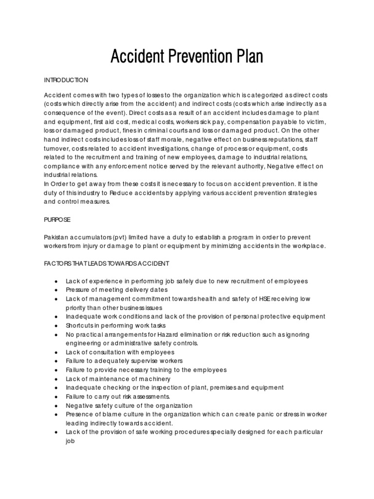Accident Prevention Plan Occupational Safety And Health Safety