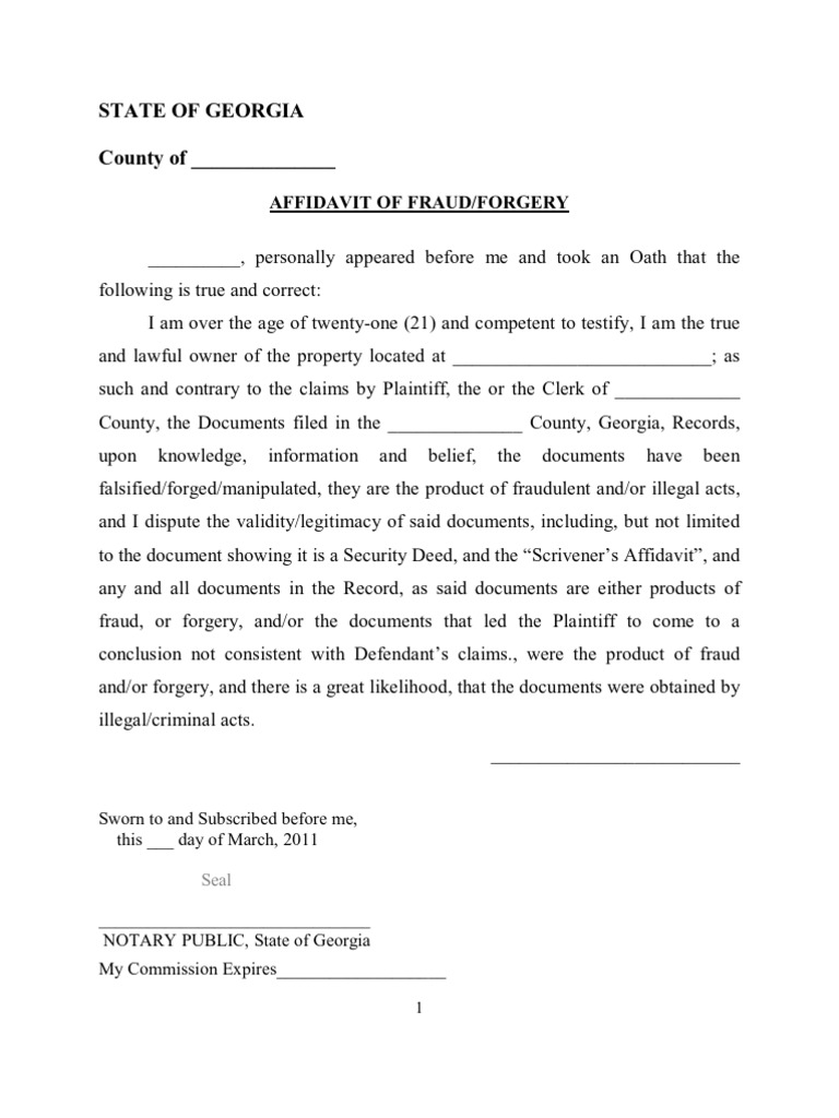 Affidavit Of Forgery Template