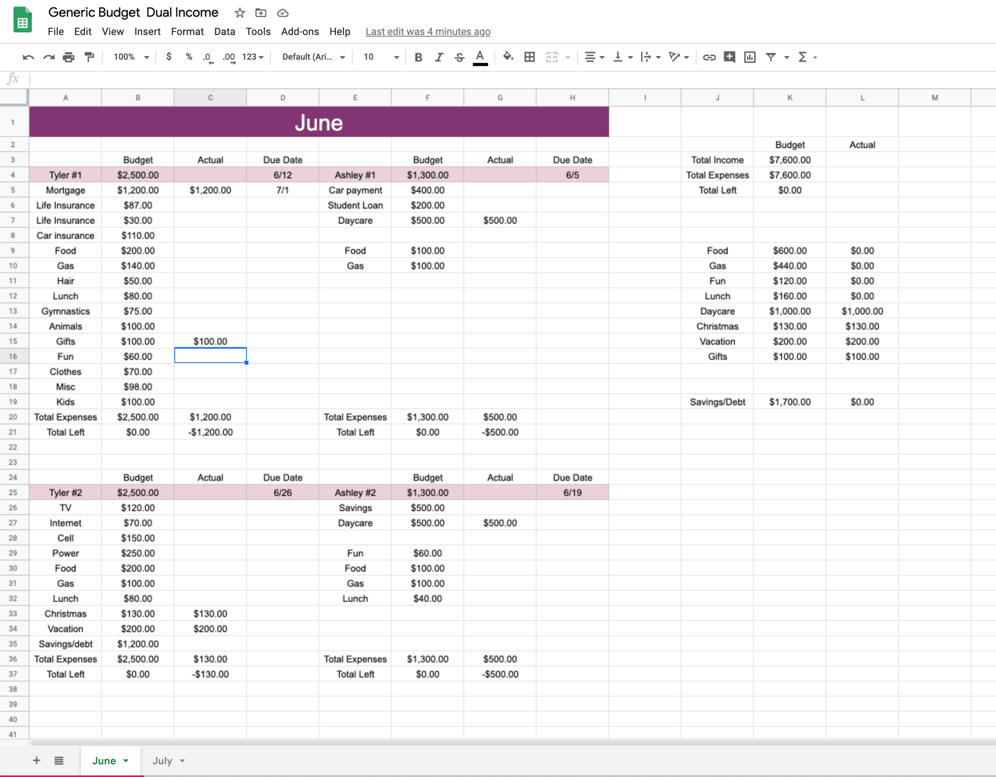 Easy Monthly Budget Spreadsheet within Sample Monthly Budget Worksheet