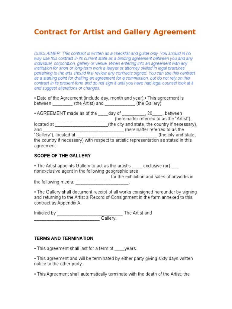 Artist-Gallery Agreement Template