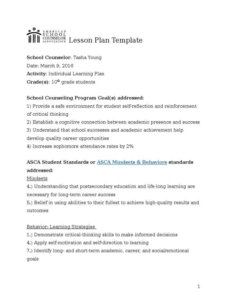 ASCA School Counselor Lesson Plan Template Google Docs, Word, Apple