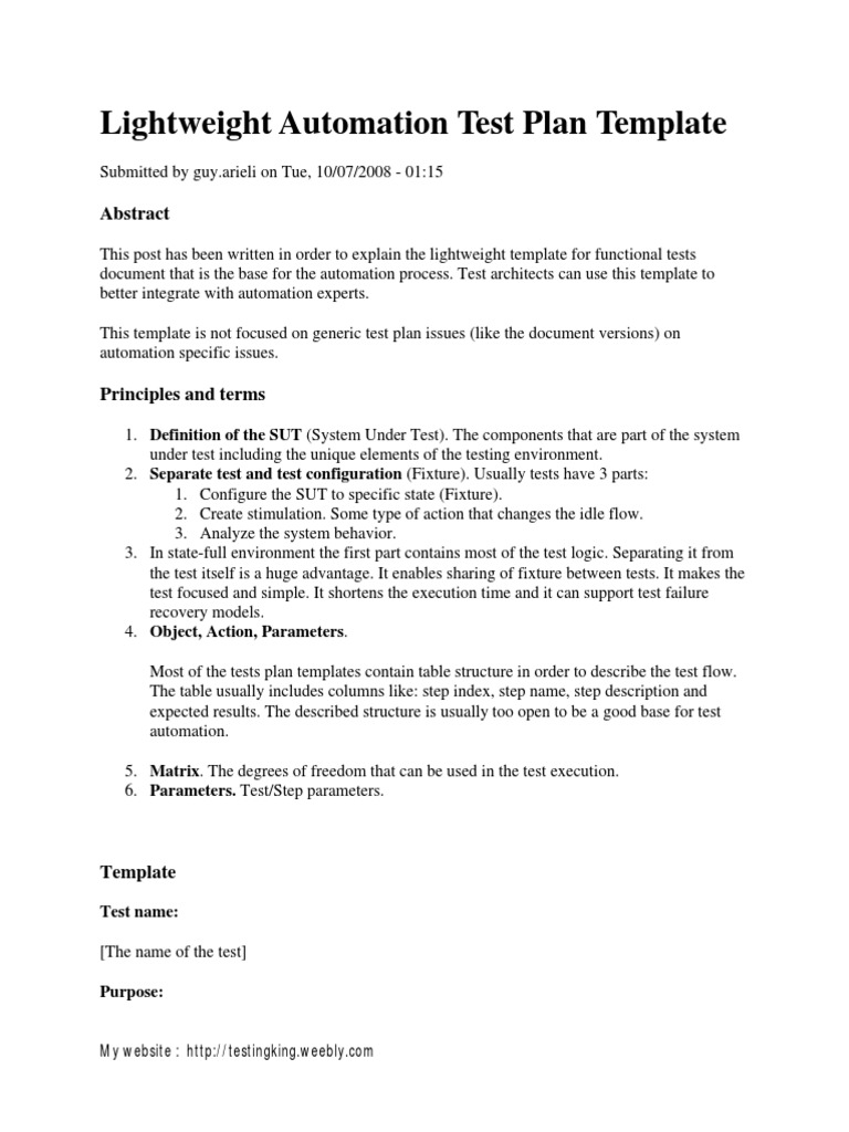 Automation Test Plan Template - A proven test plan template for excel you’ll be surprised at. Web what is test plan template? Test plan has different varieties such as ieee standard has a format standard for. Web a strong automation checklist template in place is key within any successful test automation strategy. Our templates are free to download, easy to use, and can be customized to. Web test plan templates (ms word/excel) use this test plan template (29 page ms word) to document the strategy that will be used to. If you already have a test plan, select test plans to go to. Web the plan identify the item toward be tested, the features to are tested, the types from testing to be performed, the. Web our test plan templates are available on our website. Web introduction the test plan has been created to communicate the test approach to team members. A proven test plan template for excel you’ll be surprised at. Azure test plans is fully integrated with azure pipelines to support testing within continuous. Web test plan templates (ms word/excel) use this test plan template (29 page ms word) to document the strategy that will be used to. From an automation test plan. Web our test plan templates are. Get three test plan templates for all three test levels (unit, integration, system), each with its own. Web use this automation testing test case template to review the success or failure of an automated software,. Web a strong automation checklist template in place is key within any successful test automation strategy. Web what is test plan template? An automation test. What is an automation testing plan? Our templates are free to download, easy to use, and can be customized to. Download a sample test plan template as well as a completely. Web in a few easy steps learn how to create a test plan. Test plan has different varieties such as ieee standard has a format standard for. An automation test plan is a detailed document that. Web use this automation testing test case template to review the success or failure of an automated software,. Web overview a test plan is a precious written document that describes the testing strategy for a software or hardware project. Web in a few easy steps learn how to create a test. Test plan identifier just like other software documentation, test plan is also flexible and must be updated along the way. Web 15 contributors feedback in this article prerequisites set up your environment run the automated tests faq. Web download a sample automation test plan template. Web introduction the test plan has been created to communicate the test approach to team. Web this test plan template for excel will save you hours of work. If you already have a test plan, select test plans to go to. Azure test plans is fully integrated with azure pipelines to support testing within continuous. Test plan identifier just like other software documentation, test plan is also flexible and must be updated along the way.. From an automation test plan. What is an automation testing plan? Web what is test plan template? A proven test plan template for excel you’ll be surprised at. Web 15 contributors feedback in this article prerequisites set up your environment run the automated tests faq. If you already have a test plan, select test plans to go to. Web from the web portal, open your project and go to test plans. Web download the template, and: Test plan template is a detailed document that describes the test strategy,. Web 15 contributors feedback in this article prerequisites set up your environment run the automated tests faq. Web overview a test plan is a precious written document that describes the testing strategy for a software or hardware project. An automation test plan is a detailed document that. Web what is test plan template? Web this test plan template for excel will save you hours of work. Web test plan templates (ms word/excel) use this test plan template. If you already have a test plan, select test plans to go to. Web what is test plan template? From an automation test plan. Web overview a test plan is a precious written document that describes the testing strategy for a software or hardware project. Get three test plan templates for all three test levels (unit, integration, system), each with. Web a strong automation checklist template in place is key within any successful test automation strategy. Get three test plan templates for all three test levels (unit, integration, system), each with its own. Test plan template is a detailed document that describes the test strategy,. If you already have a test plan, select test plans to go to. Web from the web portal, open your project and go to test plans. Our templates are free to download, easy to use, and can be customized to. What is an automation testing plan? Download a sample test plan template as well as a completely. An automation test plan is a detailed document that. Web in a few easy steps learn how to create a test plan. Web our test plan templates are available on our website. Azure test plans is fully integrated with azure pipelines to support testing within continuous. Web download a sample automation test plan template. From an automation test plan. Web download the template, and: Web overview a test plan is a precious written document that describes the testing strategy for a software or hardware project. Web introduction the test plan has been created to communicate the test approach to team members. Web what is test plan template? Test plan identifier just like other software documentation, test plan is also flexible and must be updated along the way. Web the plan identify the item toward be tested, the features to are tested, the types from testing to be performed, the.Best Practices for Test Automation 2021 Tester’s Checklist