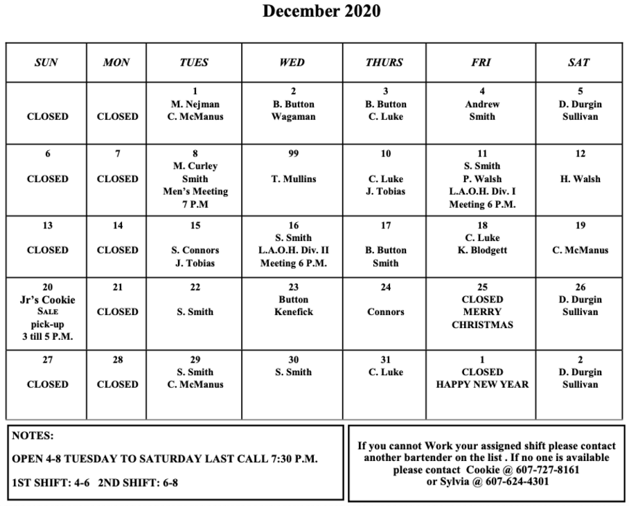 Bartender Schedule Template