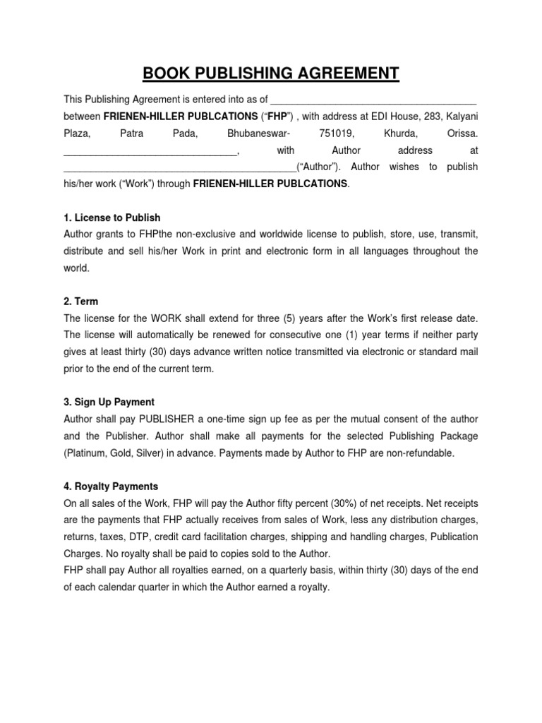 Book Publishing Agreement FHP Indemnity Publishing