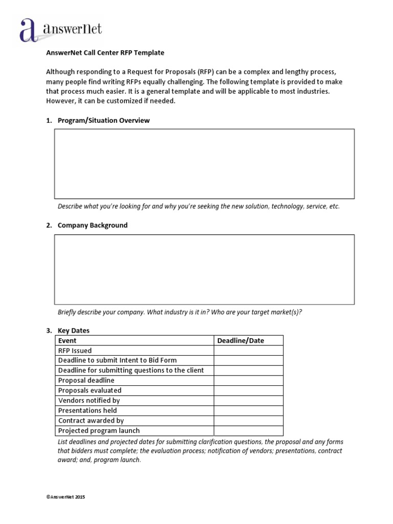 Call Center Rfp Template