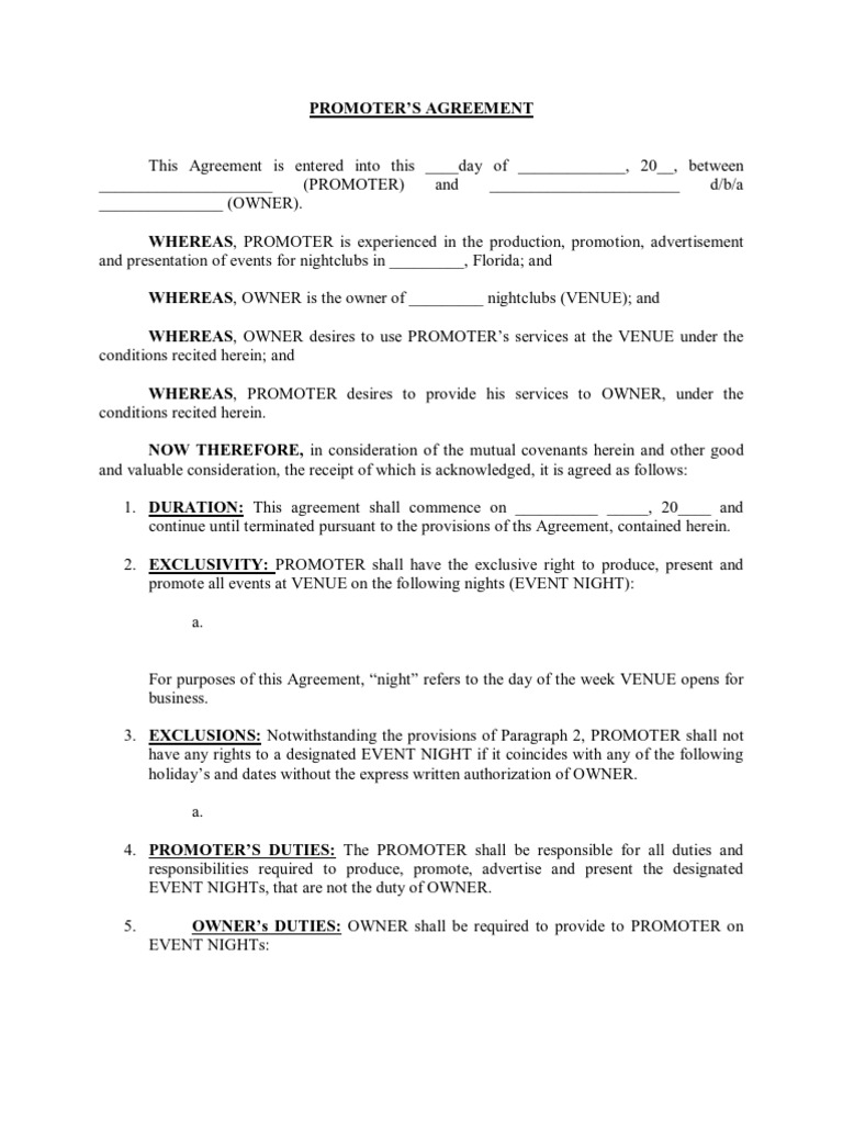 Club Promoter Contract Template Master of Documents