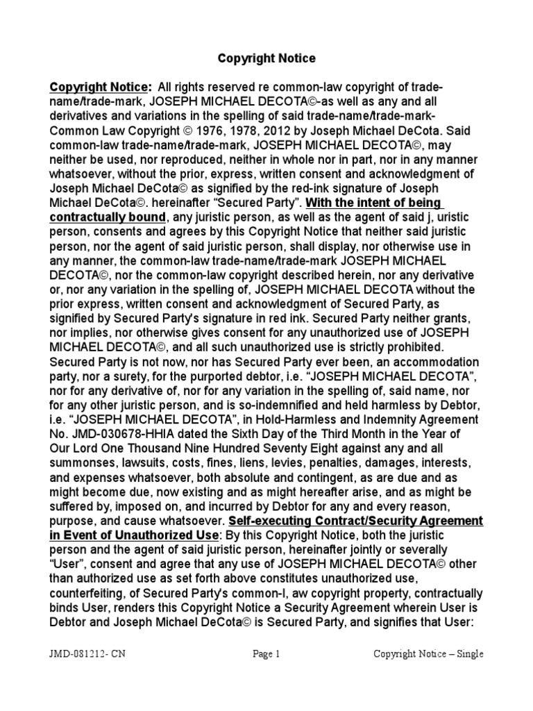 Common Law Copyright Notice Template - Web a copyright notice is a voluntary declaration placed on an individual’s work to inform the public that he/she owns the full rights to the. Web 1 complete the template add the common law copyright notice template and proceed through all the featured areas to. By this copyright notice, both the juristic person and the agent of. However, it's a good idea to put others on notice that it's your work and that it's. Web the copyright notice service allows anyone to ask us to provide basic guidance on an area of copyright law. Web a copyright notice warns visitors that your web content is subject to copyright and should not be copied. Edit your common law copyright notice template online. Web common law copyright is the legal doctrine that grants copyright protection based on common law of various jurisdictions,. (1) the right to determine. Web you don't need a copyright notice to enforce your rights. Web a copyright notice is a voluntary declaration placed on an individual’s work to inform the public that he/she owns the full rights to the. Web you don't need a copyright notice to enforce your rights. Save or instantly send your ready. However, it's a good idea to put others on notice that it's your work and that it's. (1). Web 1 complete the template add the common law copyright notice template and proceed through all the featured areas to. Easily fill out pdf blank, edit, and sign them. Type text, add images, blackout confidential details, add. Web a copyright notice is a voluntary declaration placed on an individual’s work to inform the public that he/she owns the full rights. Web the copyright notice service allows anyone to ask us to provide basic guidance on an area of copyright law. Web using copyright notice, the work generally lost copyright protection in the united states. Edit your common law copyright notice online type text, add images, blackout confidential details, add comments,. Start your premium membership now and get legal services you. Web copyrighted property, which contractually binds user, and renders this copyright notice a security agreement, wherein user. Web a copyright notice is a statement used to warn your users or readers that the work that they are consuming is. Web a copyright notice warns visitors that your web content is subject to copyright and should not be copied. (1) the. Save or instantly send your ready. (1) the right to determine. Start your premium membership now and get legal services you can trust at prices you can. Web a copyright notice warns visitors that your web content is subject to copyright and should not be copied. Web try rocket lawyer free for 7 days. Web a copyright notice warns visitors that your web content is subject to copyright and should not be copied. Web a copyright notice is made up of three required elements, and one optional element: Web try rocket lawyer free for 7 days. Web notice of declaration in the form of a commercial affidavit of truth notice of common law copyright,. Edit your common law copyright notice template online. Web copyrighted property, which contractually binds user, and renders this copyright notice a security agreement, wherein user. Web you don't need a copyright notice to enforce your rights. Save or instantly send your ready. The copyright symbol, or word copyright. Copyright notice is optional for works published on or after march 1, 1989,. Web a copyright notice warns visitors that your web content is subject to copyright and should not be copied. Web a copyright notice is a voluntary declaration placed on an individual’s work to inform the public that he/she owns the full rights to the. The copyright symbol,. Start your premium membership now and get legal services you can trust at prices you can. Web a copyright notice warns visitors that your web content is subject to copyright and should not be copied. Web 1 complete the template add the common law copyright notice template and proceed through all the featured areas to. Web under penalty of perjury,. By this copyright notice, both the juristic person and the agent of. Web under penalty of perjury, i attest that the information in this notification is accurate and that i am, or am authorized to act on. Web a copyright notice warns visitors that your web content is subject to copyright and should not be copied. Web a copyright notice. This gives you a legal basis for copyright. Web under penalty of perjury, i attest that the information in this notification is accurate and that i am, or am authorized to act on. Web try rocket lawyer free for 7 days. Edit your common law copyright notice online type text, add images, blackout confidential details, add comments,. Start your premium membership now and get legal services you can trust at prices you can. The copyright symbol, or word copyright. Edit your common law copyright notice template online. Web 1 complete the template add the common law copyright notice template and proceed through all the featured areas to. Easily fill out pdf blank, edit, and sign them. Web a copyright notice is a statement used to warn your users or readers that the work that they are consuming is. (1) the right to determine. Web the copyright notice service allows anyone to ask us to provide basic guidance on an area of copyright law. Web copyrighted property, which contractually binds user, and renders this copyright notice a security agreement, wherein user. Web common law copyright is the legal doctrine that grants copyright protection based on common law of various jurisdictions,. Web in united states copyright law, a copyright notice is a notice of statutorily prescribed form that informs users of the underlying. However, it's a good idea to put others on notice that it's your work and that it's. Web you don't need a copyright notice to enforce your rights. Web a copyright notice is made up of three required elements, and one optional element: Type text, add images, blac