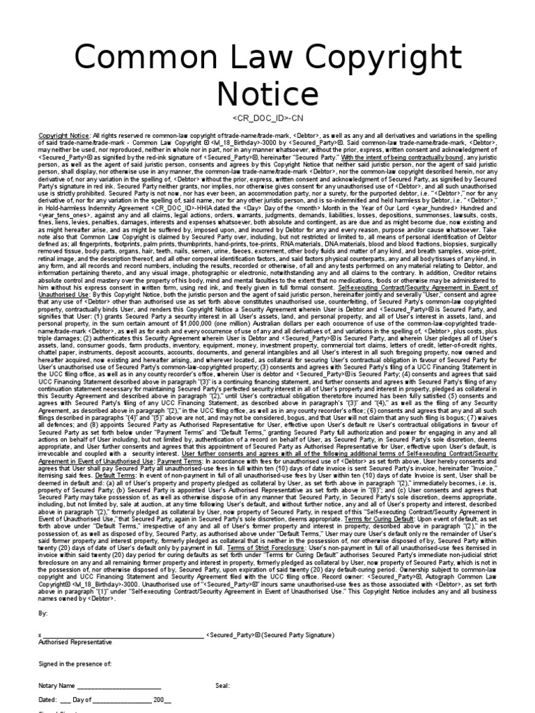 Common Law Copyright Notice Security Interest Uniform Commercial Code