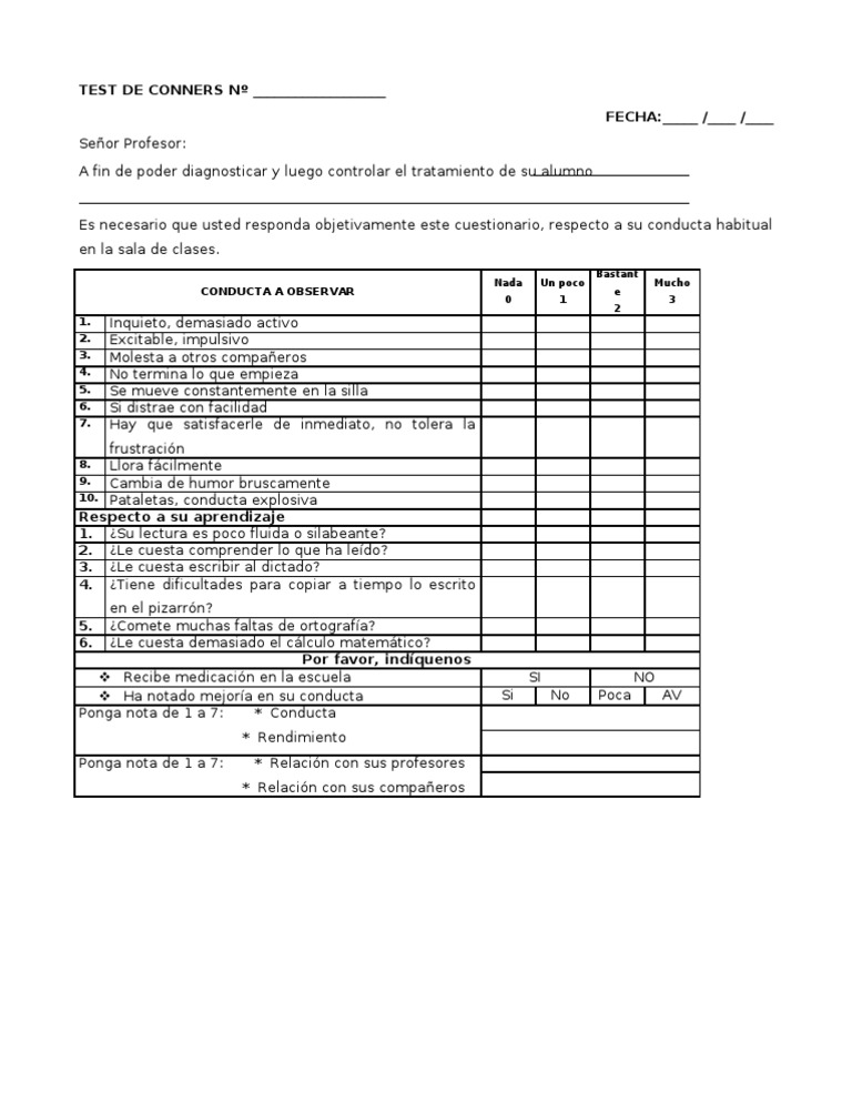 Free Printable Conners Rating Scale For Teachers Printable Templates