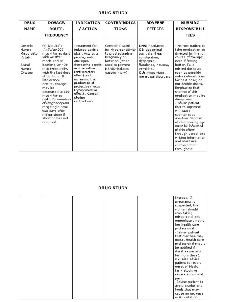 Active learning template Misoprostol ACTIVE LEARNING TEMPLATES