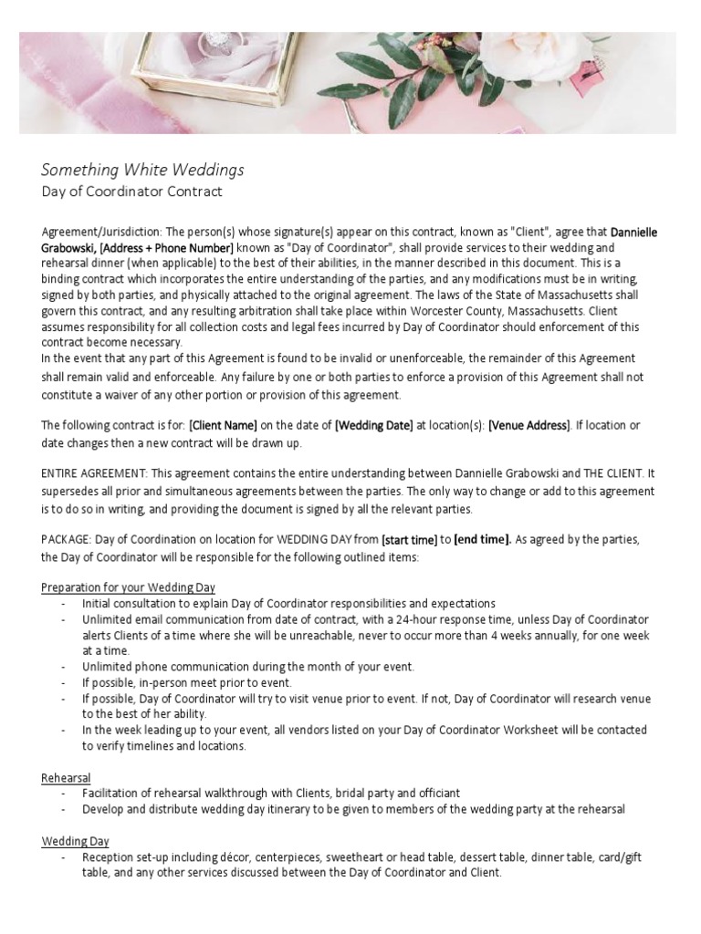 Wedding Day of Coordinator Contract Template SAMPLE PDF Etsy