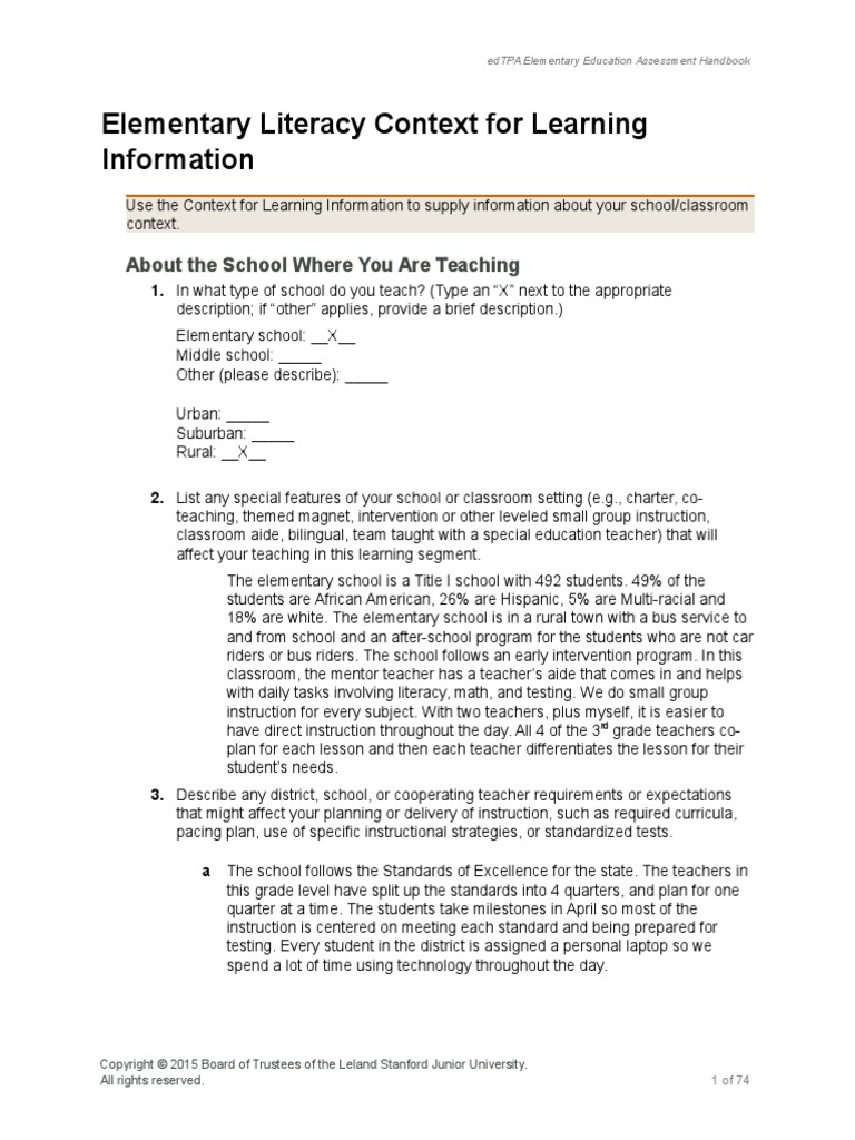 Edtpa Context For Learning Template