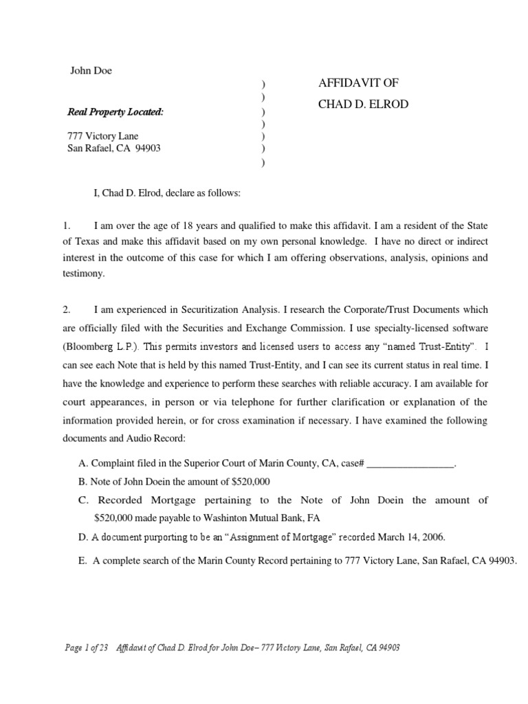 Expert Witness Affidavit by Attorney Sample Mortgage Law Assignment