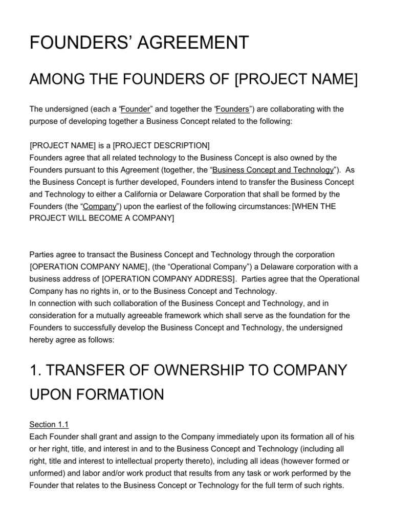 Sample 22 Great Founders Agreement Tramples For Any Startup ᐅ Founder