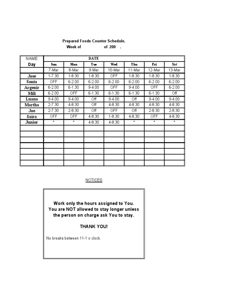 Kitchen Schedule Template Excel Chef's Schedule Template