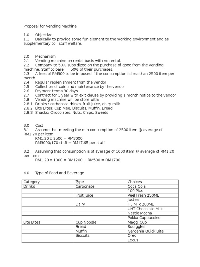 Vending Machine Placement Sample Proposal Vending machine, Vending
