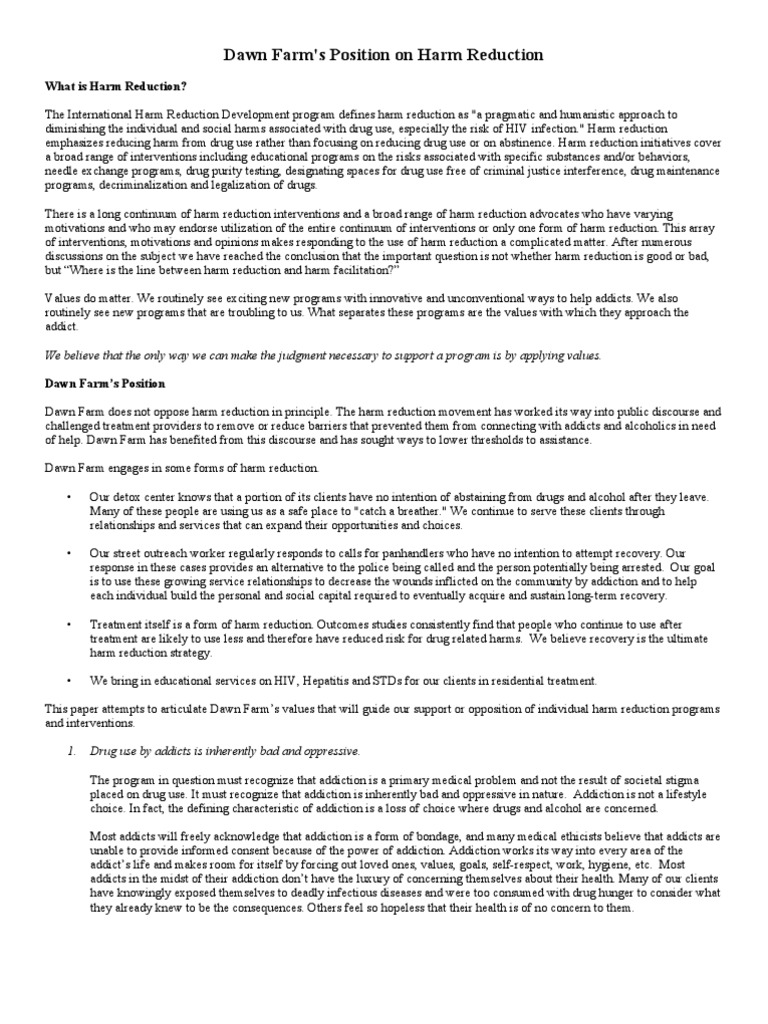 Harm Reduction Position Paper Recovery Approach Substance Dependence