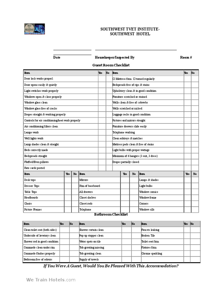 Guest Room Cleaning Checklist Template Interior Design Home