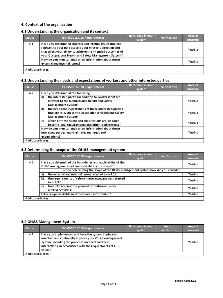 (PDF) ISO 450012018 Audit Check List