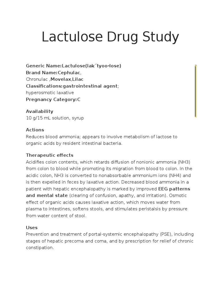 Lactulose Medication Template STUDENT NAME Schleria Gross