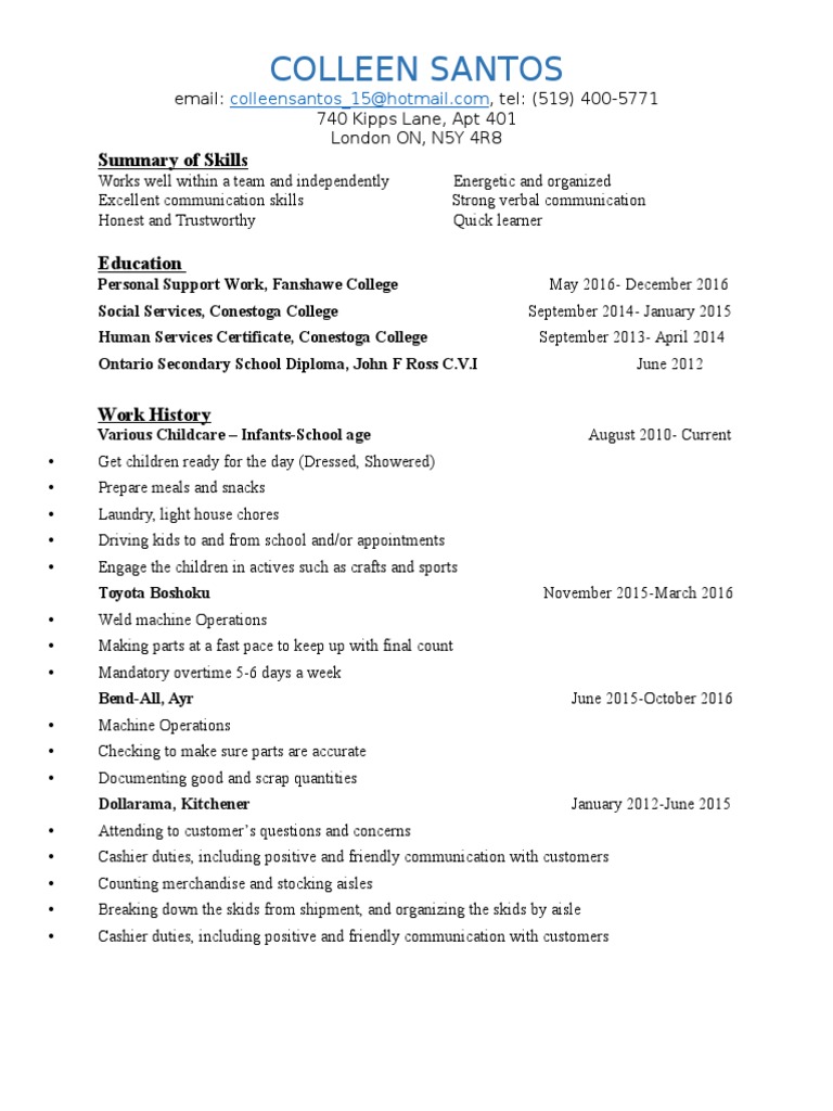 london resume 2016colleen Further Education Wellness