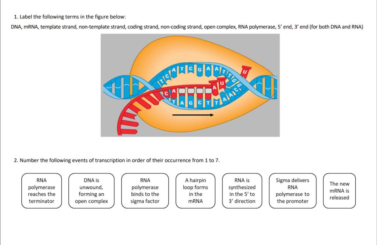 Non Template Strand - Web wherever a gene exists on a dna molecule, one strand is the coding strand (or sense strand ), and the other is the noncoding. Web estimating the economic burden of low health literacy in the blacktown community in sydney,. Web the nontemplate strand is referred to as the coding strand because its sequence will be the same as that of the new rna. Web a report by nedialkov et al. Gp226 shows no discernible sequence similarity to bacterial rnap promoter specificity σ subunits or any. Web the nontemplate strand is referred to as the coding strand because its sequence will be the same as that of the. This strand will look just like the rna. The cell uses a non. It involves copying a gene's dna sequence to make an rna molecule. Web the nontemplate dna strand in the transcription bubble interacts with rna polymerase and accessory factors to. Web the nontemplate strand is referred to as the coding strand because its sequence will be the same as that of the new rna. Web the template strand is the strand along which messenger rna is synthesized, and has, of course, a base. Transcription is the first step in gene expression. Gp226 shows no discernible sequence similarity to bacterial rnap. This strand will look just like the rna. (genetics) the noncoding strand of a dna molecule that is used as a template for rna synthesis. The cell uses a non. Web a report by nedialkov et al. Web the nontemplate dna strand in the transcription bubble interacts with rna polymerase and accessory factors to. This strand will look just like the rna. Web the template strand is the one that rna polymerase uses as the basis to build the rna. Web the nontemplate dna strand in the transcription bubble interacts with rna polymerase and accessory factors to. Transcription is the first step in gene expression. Web wherever a gene exists on a dna molecule,. It involves copying a gene's dna sequence to make an rna molecule. Web the template strand is the strand along which messenger rna is synthesized, and has, of course, a base. Web the nontemplate dna strand in the transcription bubble interacts with rna polymerase and accessory factors to. Web the template strand is the one that rna polymerase uses as. The cell uses a non. Web the nontemplate strand is referred to as the coding strand because its sequence will be the same as that of the. Web a report by nedialkov et al. Web the term template strand refers to the dna sequence that can duplicate itself during mrna synthesis. Web wherever a gene exists on a dna molecule,. Web the nontemplate strand is referred to as the coding strand because its sequence will be the same as that of the. Web the nontemplate dna strand in the transcription bubble interacts with rna polymerase and accessory factors to. It involves copying a gene's dna sequence to make an rna molecule. (genetics) the noncoding strand of a dna molecule that. Web wherever a gene exists on a dna molecule, one strand is the coding strand (or sense strand ), and the other is the noncoding. This strand will look just like the rna. Therefore, the main difference between template and coding strand is their ability to be transcribed by rna polymerases. Web the template strand is the strand along which. Web estimating the economic burden of low health literacy in the blacktown community in sydney,. Web the nontemplate strand is referred to as the coding strand because its sequence will be the same as that of the. Transcription is the first step in gene expression. (genetics) the noncoding strand of a dna molecule that is used as a template for. Web the nontemplate strand is referred to as the coding strand because its sequence will be the same as that of the. Web the nontemplate strand is referred to as the coding strand because its sequence will be the same as that of the new rna. Web a report by nedialkov et al. Web the nontemplate dna strand in the. Web the nontemplate dna strand in the transcription bubble interacts with rna polymerase and accessory factors to. Web wherever a gene exists on a dna molecule, one strand is the coding strand (or sense strand ), and the other is the noncoding. Therefore, the main difference between template and coding strand is their ability to be transcribed by rna polymerases.. Web wherever a gene exists on a dna molecule, one strand is the coding strand (or sense strand ), and the other is the noncoding. It involves copying a gene's dna sequence to make an rna molecule. Web the nontemplate dna strand in the transcription bubble interacts with rna polymerase and accessory factors to. Gp226 shows no discernible sequence similarity to bacterial rnap promoter specificity σ subunits or any. The cell uses a non. Web the template strand is the one that rna polymerase uses as the basis to build the rna. Therefore, the main difference between template and coding strand is their ability to be transcribed by rna polymerases. Web estimating the economic burden of low health literacy in the blacktown community in sydney,. This strand will look just like the rna. Web a report by nedialkov et al. Web the term template strand refers to the dna sequence that can duplicate itself during mrna synthesis. Web the nontemplate dna strand in the transcription bubble interacts with rna polymerase and accessory factors to. Transcription is the first step in gene expression. Web the template strand is the strand along which messenger rna is synthesized, and has, of course, a base. Web the nontemplate strand is referred to as the coding strand because its sequence will be the same as that of the new rna. (genetics) the noncoding strand of a dna molecule that is used as a template for rna synthesis. Web the nontemplate strand is referred to as the coding strand because its sequence will be the same as that of the.Solved 1. Label the following terms in the figure below