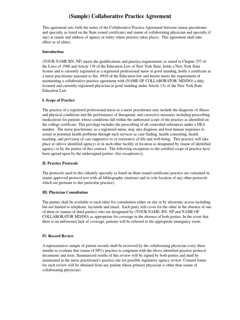 Nurse Practitioner Collaborative Agreement Template Form Fill Out and