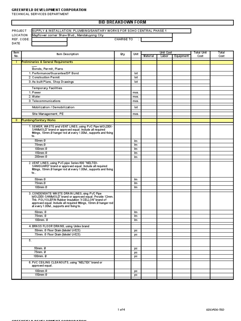 Free Electrical & Plumbing Construction Bid Package Turbobid Plumbing