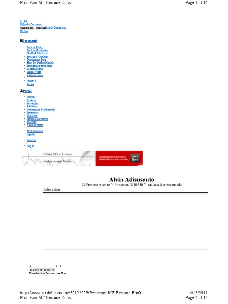 Princeton Mfin Resume Book Scribd Business