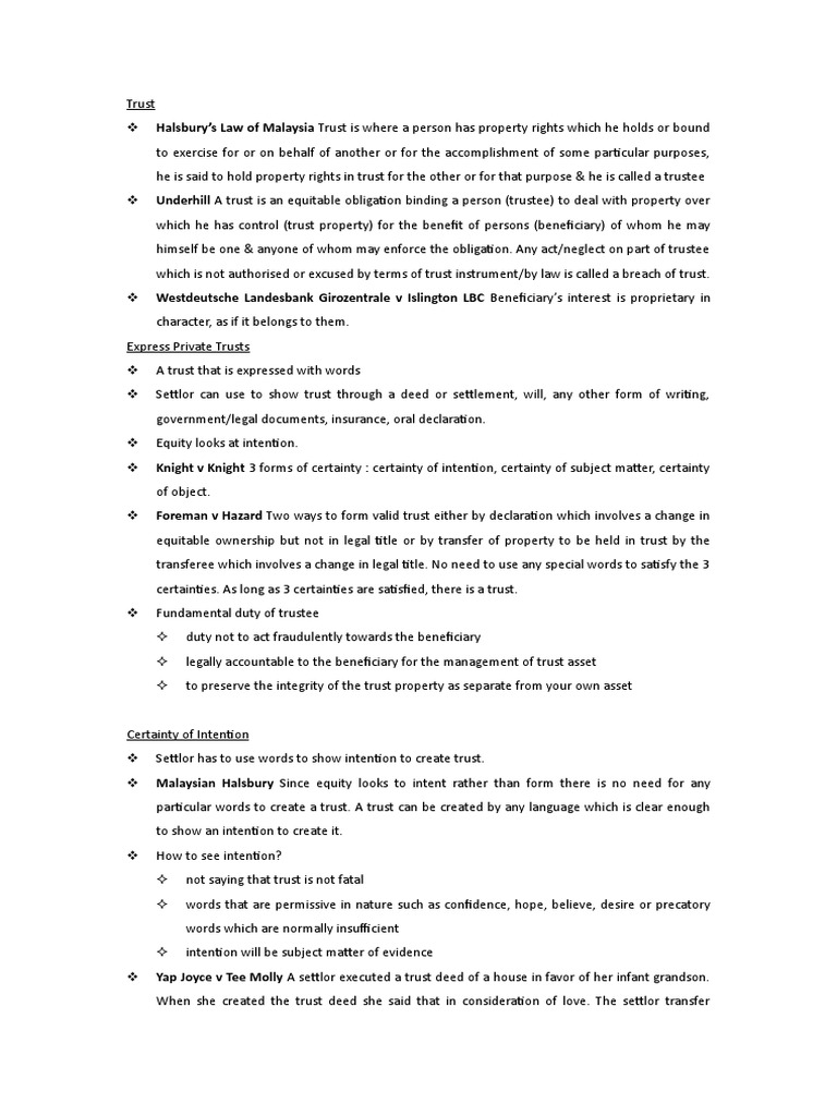 Express Trusts Notes Beneficiary (Trust) Trust Law