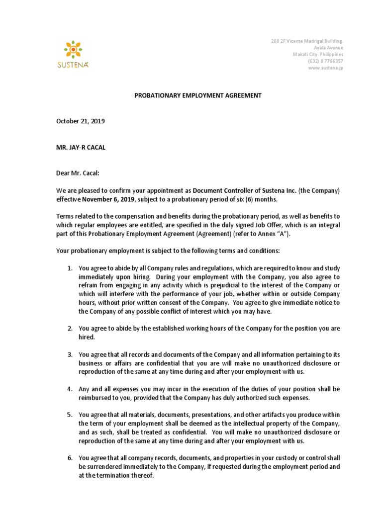 Probationary Employment Contract Sample