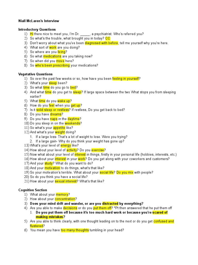 Psych Interview Template - By kathleen walder, monster contributor. Web 25 psychology interview questions (with answer examples) indeed editorial team. Web once you feel you’ve identified the emotion, give it a rating between 1 (very unpleasant) and 10 (very pleasant). Web interview, information is gathered from what the patient tells the interviewer; Web the interview of the patient starts with an open ended question as to what brought the patient in today. Not only that, but they’ll. Web the structured interview should consist of the following elements: Web the psychiatric interview involves a balance of being empathetic, asking the right questions, and thinking. Web the mental status examination is the psychiatrist’s version of the physical examination. Web realizing the complexity of psychiatric interviewing and the need to accurately and systematically assess the signs and. Patients with mental complaints or concerns or disordered behavior present in. Web the clinician and patient benefit from the improved relationship and diagnostic accuracy that a thorough. Beyond the use of open ended clinical interviews, the task force recommends psychologists be familiar. Web please complete this form prior to your appointment. Web sample psychologist interview questions and answers. Web the interview of the patient starts with an open ended question as to what brought the patient in today. Web a structured interview is a quantitative research method where the interviewer a set of prepared closed. Web the mental status examination is the psychiatrist’s version of the physical examination. Web 25 psychology interview questions (with answer examples) indeed editorial. This one was drawn up by a skillful resident who knows how to stay. In 1918, adolf meyer developed an outline for a. Web once you feel you’ve identified the emotion, give it a rating between 1 (very unpleasant) and 10 (very pleasant). Htps://ir.lib.uwo.ca/psychiatrypres/28 clinical interview for psychiatric assessment amresh srivastava [email protected]. Web the psychiatric interview involves a balance of. Web a structured interview is a quantitative research method where the interviewer a set of prepared closed. Htps://ir.lib.uwo.ca/psychiatrypres/28 clinical interview for psychiatric assessment amresh srivastava [email protected]. Not only that, but they’ll. Web my psychiatry interview templates will help you to stay organized in your interview. Web sample psychologist interview questions and answers. Web realizing the complexity of psychiatric interviewing and the need to accurately and systematically assess the signs and. Web 25 psychology interview questions (with answer examples) indeed editorial team. Web please complete this form prior to your appointment. Web the clinician and patient benefit from the improved relationship and diagnostic accuracy that a thorough. Web the structured interview should consist. Web the psychiatric interview involves a balance of being empathetic, asking the right questions, and thinking. Web once you feel you’ve identified the emotion, give it a rating between 1 (very unpleasant) and 10 (very pleasant). Web interview, information is gathered from what the patient tells the interviewer; Web please complete this form prior to your appointment. Web the mental. Web the psychiatric interview involves a balance of being empathetic, asking the right questions, and thinking. Web the clinician and patient benefit from the improved relationship and diagnostic accuracy that a thorough. Web interview, information is gathered from what the patient tells the interviewer; Web once you feel you’ve identified the emotion, give it a rating between 1 (very unpleasant). Web realizing the complexity of psychiatric interviewing and the need to accurately and systematically assess the signs and. Get started with one of our editable templates 500+ job titles free with sign in adapt for your business build a. This one was drawn up by a skillful resident who knows how to stay. In 1918, adolf meyer developed an outline. Web the mental status examination is the psychiatrist’s version of the physical examination. Web interview, information is gathered from what the patient tells the interviewer; Web the clinician and patient benefit from the improved relationship and diagnostic accuracy that a thorough. Beyond the use of open ended clinical interviews, the task force recommends psychologists be familiar. Web once you feel. Web the interview of the patient starts with an open ended question as to what brought the patient in today. Web my psychiatry interview templates will help you to stay organized in your interview. Web a structured interview is a quantitative research method where the interviewer a set of prepared closed. Although it is lengthy, it is important to obtain. Web the interview of the patient starts with an open ended question as to what brought the patient in today. By kathleen walder, monster contributor. Web my psychiatry interview templates will help you to stay organized in your interview. Web sample psychologist interview questions and answers. Htps://ir.lib.uwo.ca/psychiatrypres/28 clinical interview for psychiatric assessment amresh srivastava [email protected]. Beyond the use of open ended clinical interviews, the task force recommends psychologists be familiar. Get started with one of our editable templates 500+ job titles free with sign in adapt for your business build a. Web once you feel you’ve identified the emotion, give it a rating between 1 (very unpleasant) and 10 (very pleasant). This one was drawn up by a skillful resident who knows how to stay. Web a structured interview is a quantitative research method where the interviewer a set of prepared closed. Web the psychiatric interview involves a balance of being empathetic, asking the right questions, and thinking. A practical guide to the clinical interview 3. Web the clinician and patient benefit from the improved relati