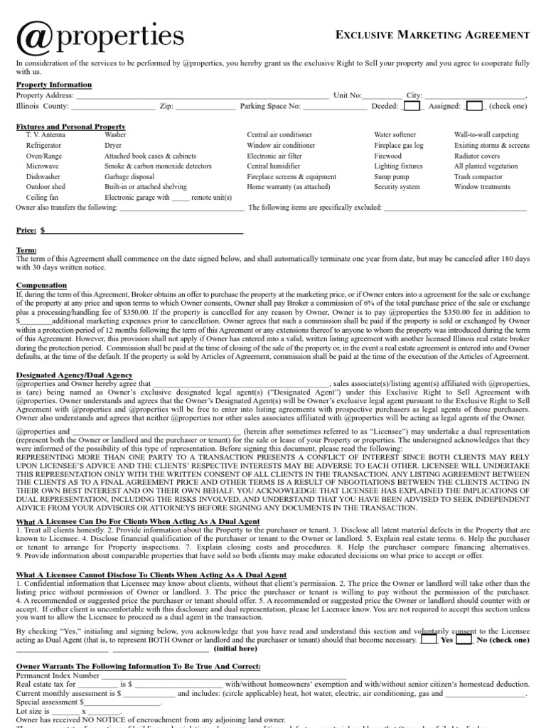 Properties Exclusive Marketing Agreement Real Estate Broker Landlord