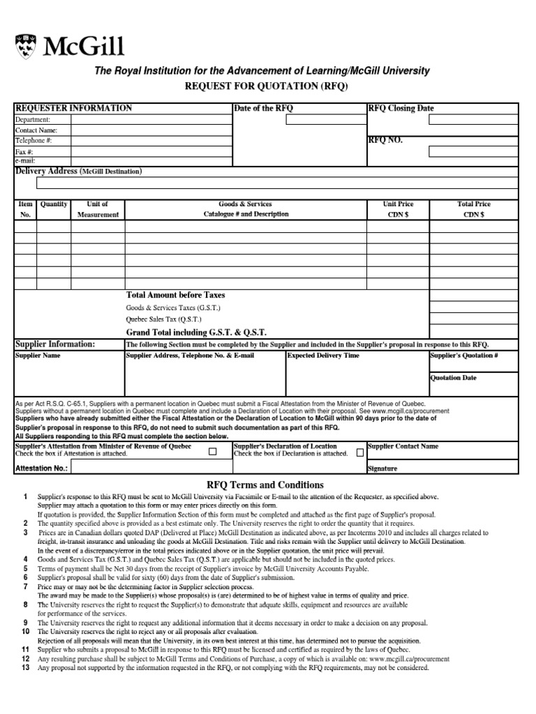 Rfq Template Excel