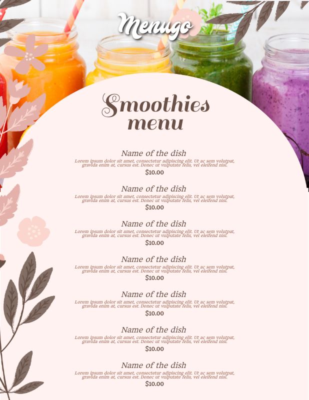 Menugo Smoothies Menu Template