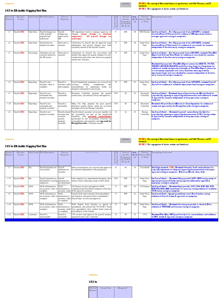 SOX Internal Control Case Study and Control Matrix [CLIENT] SOX 404