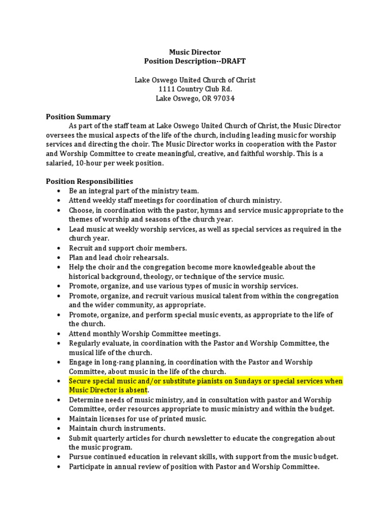 Music Director Contract