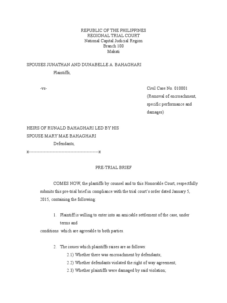 Sample Pretrial Brief Legal Procedure Lawsuit