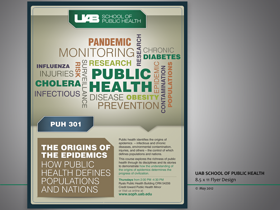 Create a flyer for the UAB School of Public Health "Origins of the