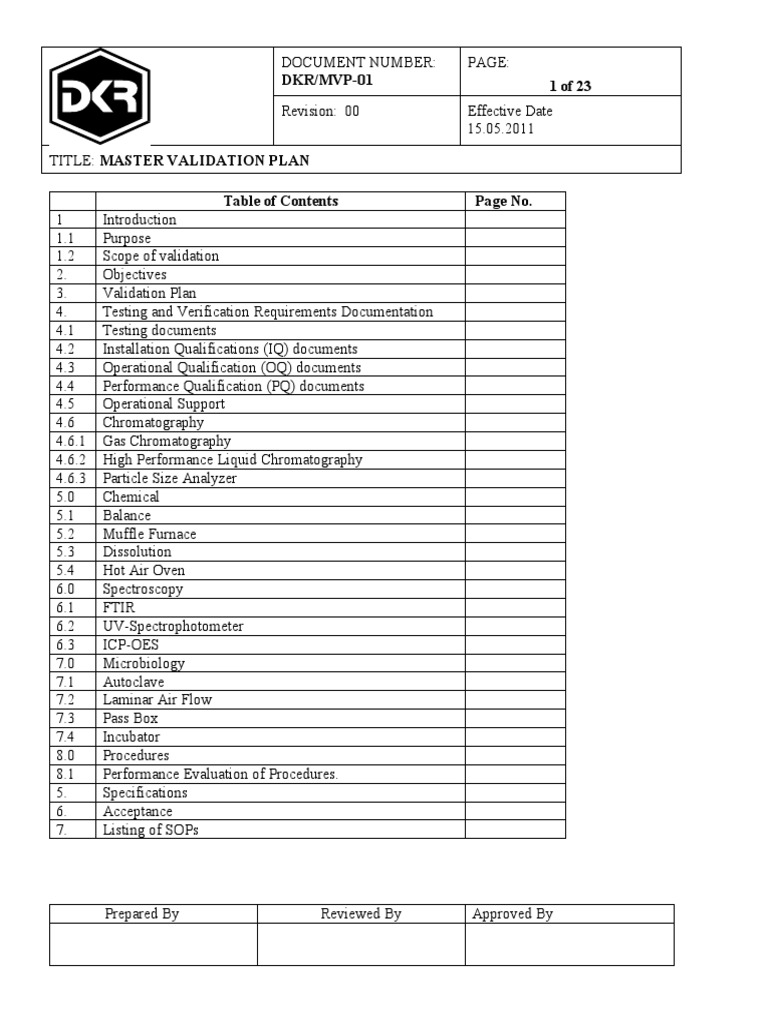 Validation Master Plan Template Pdf Best of Document Template